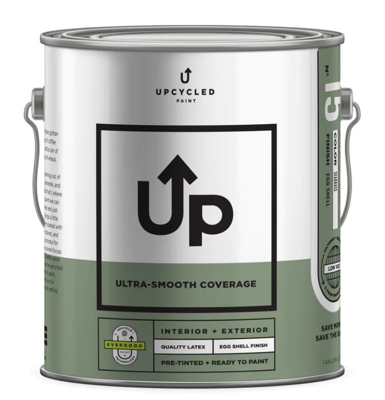 The simplest - and perhaps most effective for reducing environmental harm - upcycled product for the home is upcycled paint. Upcycled paint, like Up Paint, rescues paint sitting in garages and basements across the country. The old paint is processed and reformulated. Each gallon of Up Paint purchased saves a gallon from ending up in our landfills and oceans.