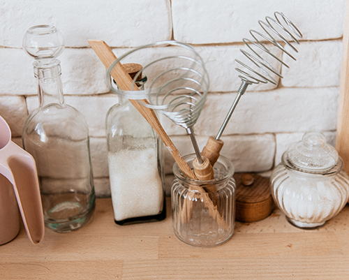 Add personality to your kitchen by upcycling used items. Old silverware can be turned into hooks for hanging pots and pans, while old jars can be used to store dry goods. Use an old tin can as a utensil holder.